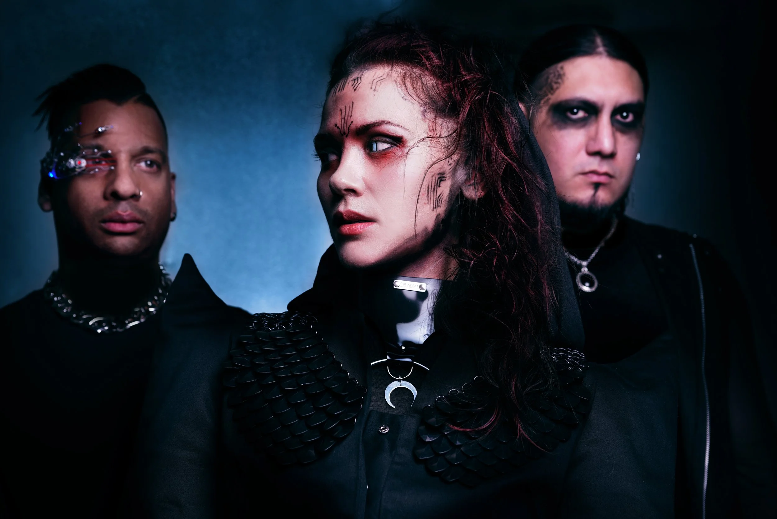 This exploration finds its most expansive form in her project Vedmah, a dark electronic metal band that merges traditional musical elements with global folklore of witchcraft. Set within a dystopian future, Vedmah unfolds as a parallel universe where ancient ritual and modern technology converge. Through this project, Ekaterina pushes musical storytelling beyond genre, fusing mythology, history, and a cyberpunk-influenced aesthetic into an immersive and evolving world.
